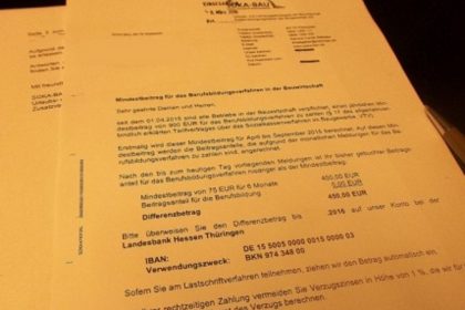SOKA-Bau versendet jetzt Mahnbescheid zum Mindestbeitrag 2015.