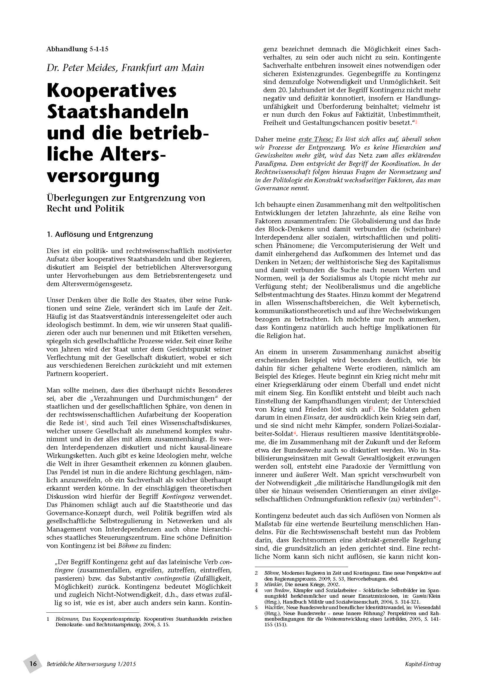 Kooperatives Staatshandeln und die betriebliche Altersversorgung. Überlegungen zur Entgrenzung von Recht und Politik. aba, BetrAV 01/2015, Seite 7-18.