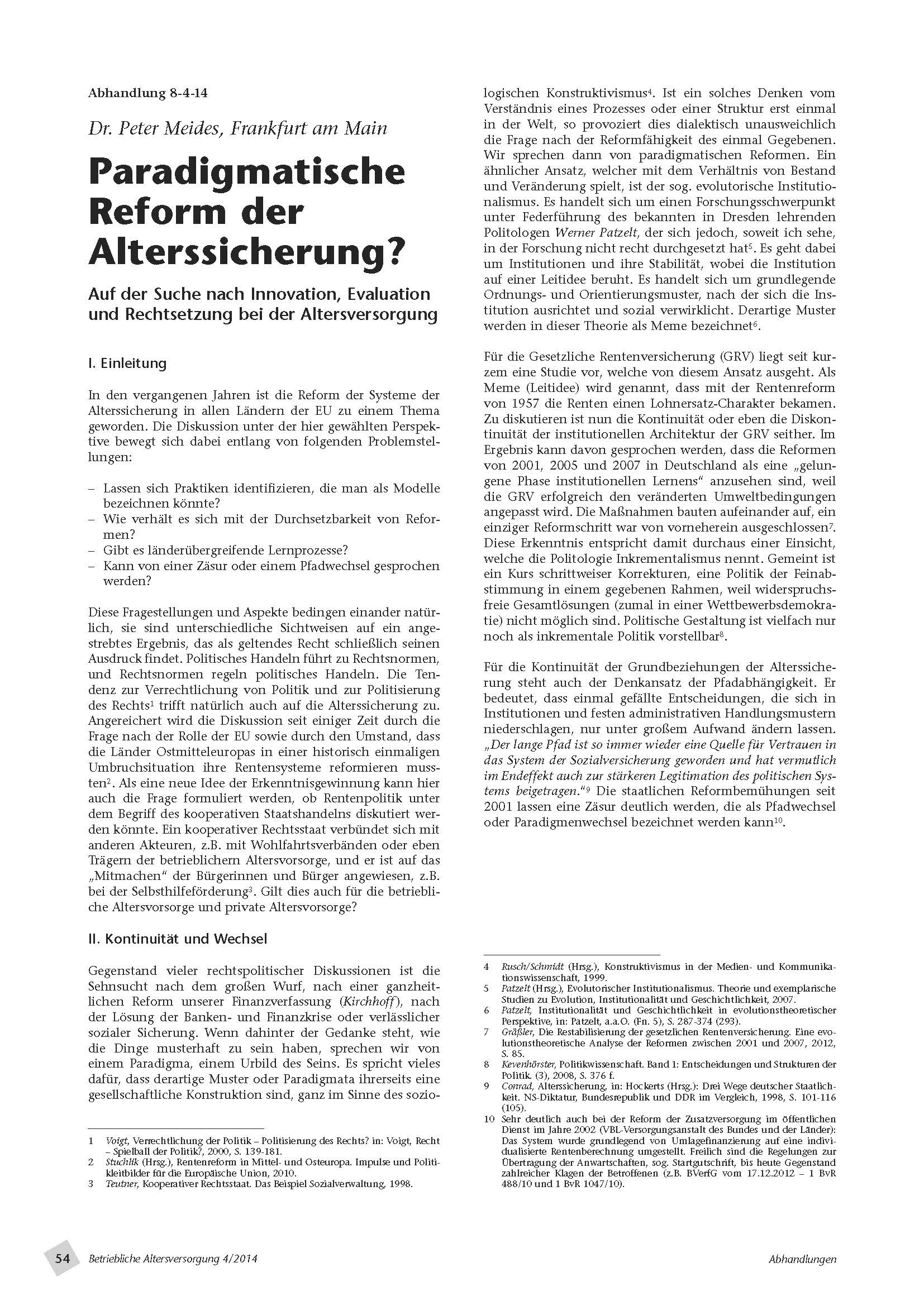 Paradigmatische Reform der Alterssicherung? Auf der Suche nach Innovation, Evaluation und Rechtsetzung bei der Altersversorgung. aba, BetrAV 04/2014, Seite 342-345.